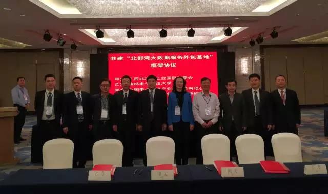 乘著北海市委務(wù)虛會的東風(fēng),2017年1月8日,在自治區(qū)工信委徐莉青副主任、北海市委常委、副市長曾子祥,桂林電子科技大學(xué)校長古天龍等領(lǐng)導(dǎo)見證下,清華大學(xué)國家服務(wù)外包人力資源研究院與桂林電子科技大學(xué)、北海工業(yè)園區(qū)管委會、中國電子北海產(chǎn)業(yè)園公司在深圳簽署合作協(xié)議,建設(shè)北部灣大數(shù)據(jù)及服務(wù)外包基地,標(biāo)志著以軟件及信息服務(wù)業(yè)為主導(dǎo)產(chǎn)業(yè)的中國電子北部灣信息港進入新的發(fā)展階段。
