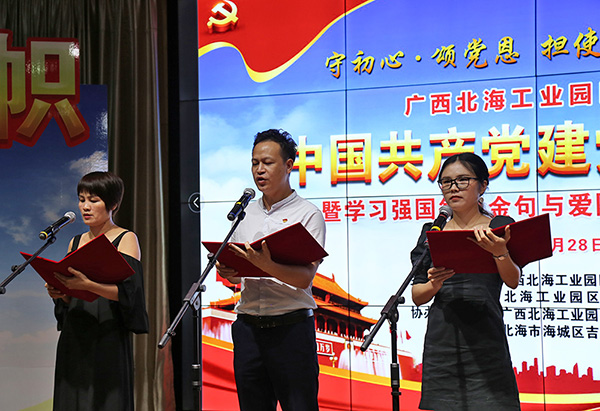 2020年6月28日下午,廣西北海工業(yè)園區(qū)迎慶中國共產黨建黨99周年暨學習強國每日金句與愛國詩詞朗誦讀比賽在工業(yè)園區(qū)舉行。中國電子北海產業(yè)園聯合黨支部組織支部黨員及代表參賽,經過精彩角逐,榮獲比賽二等獎。